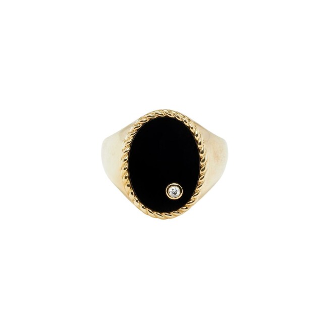 Chevalière ovale Yvonne Léon en or jaune, onyx et diamant