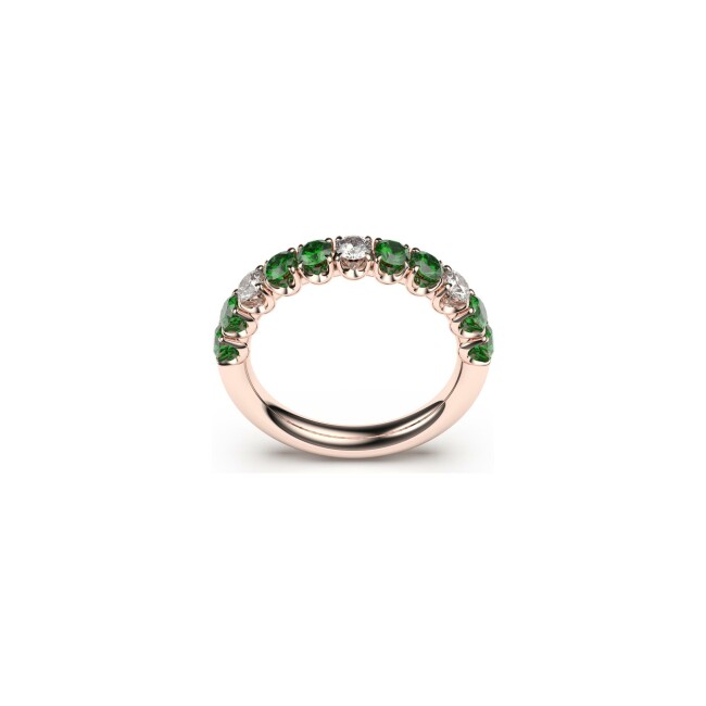 Demi alliance Frojo en or rose, émeraudes et diamants, taille 53