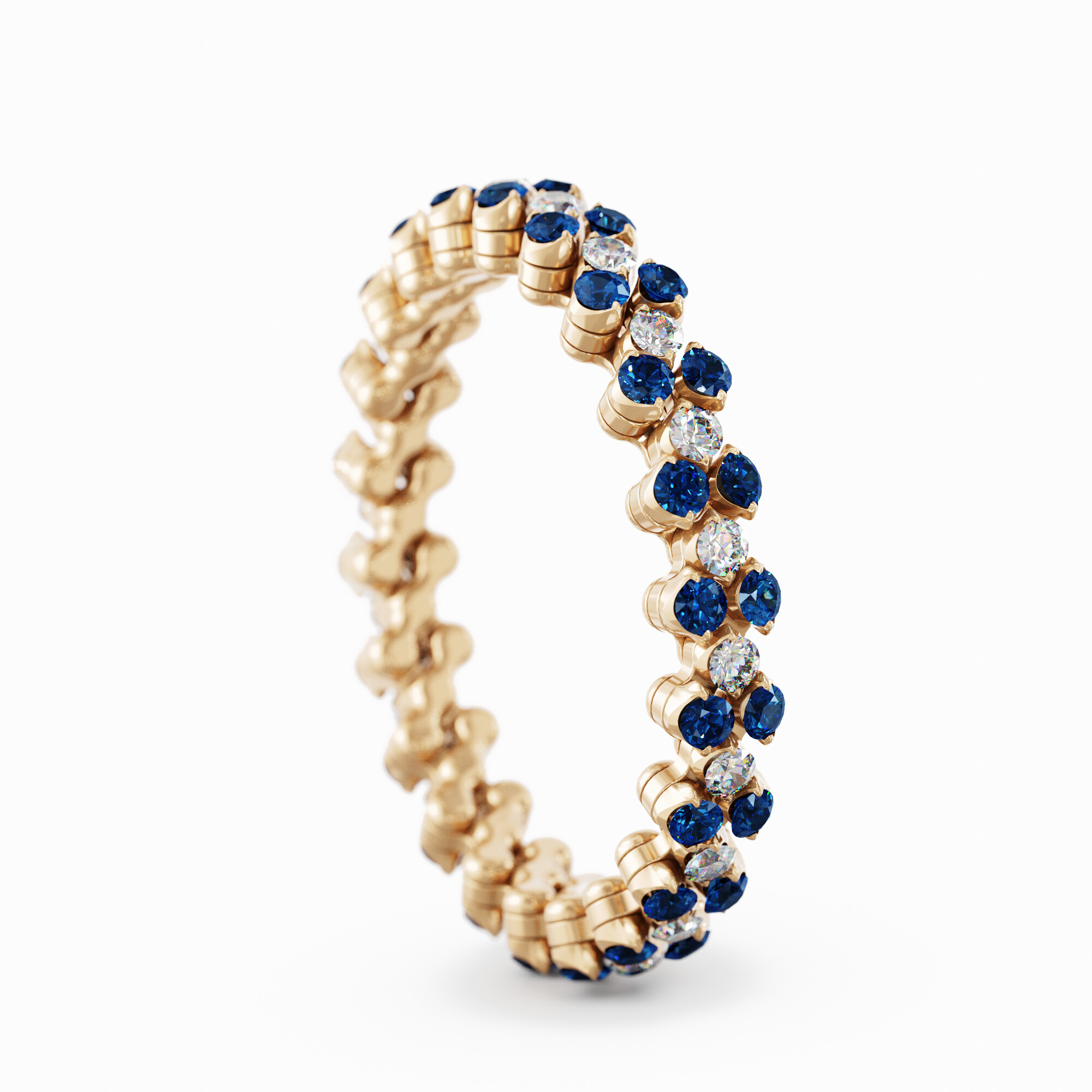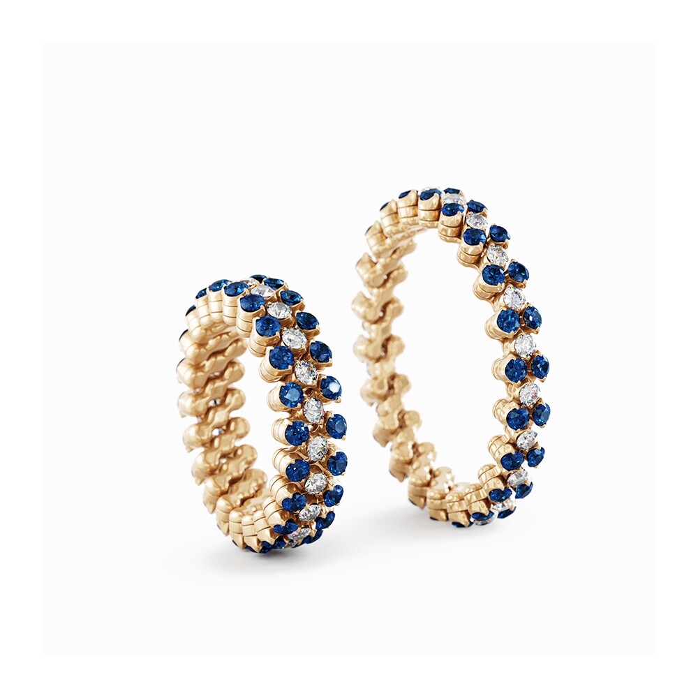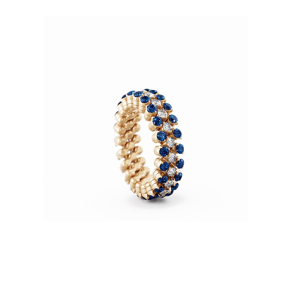 Bague 3 rangs Serafino Consoli Brevetto en or rose full pavé de diamants et saphirs, taille ajustable