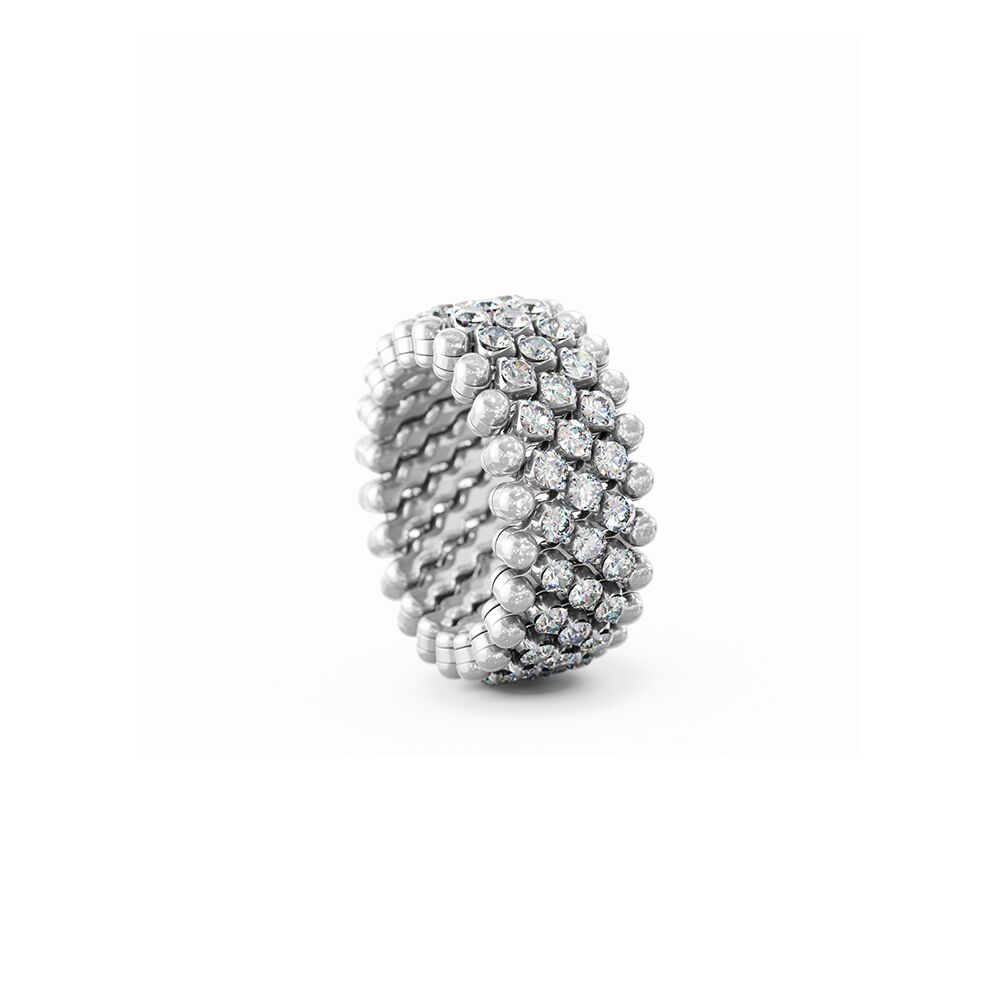 Bague 5 rangs Serafino Consoli Brevetto en or noir pavé au centre de diamants, taille ajustable
