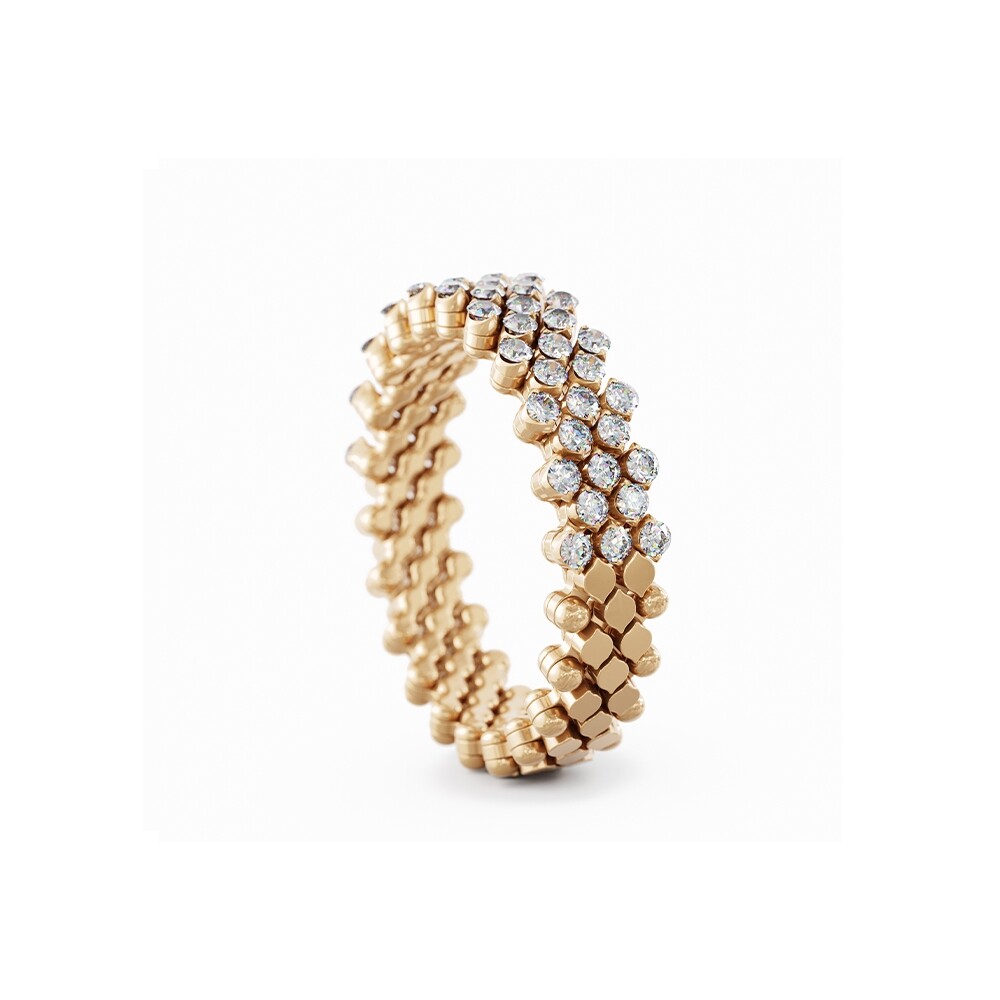 Bague 5 rangs Serafino Consoli Brevetto en or rose semi pavé de diamants , taille ajustable