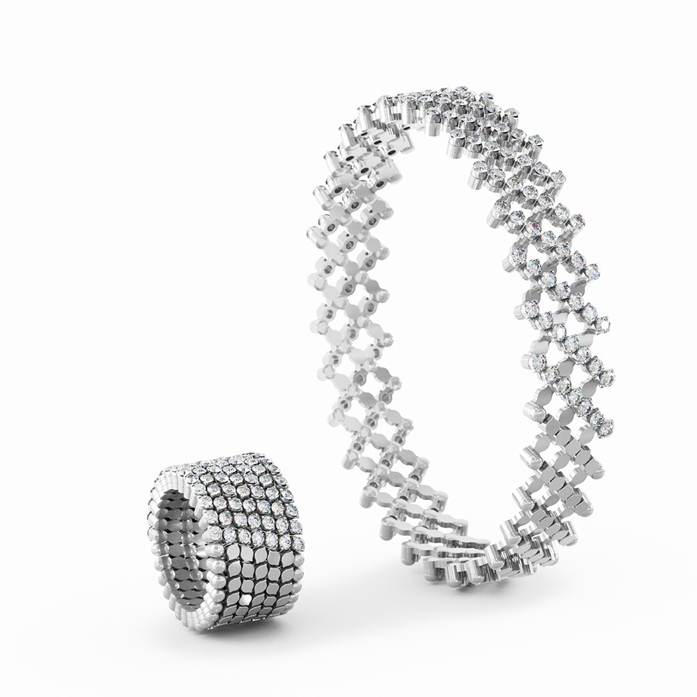 Bague Bracelet 7 rangs Serafino Consoli en or blanc semi pavé de diamants