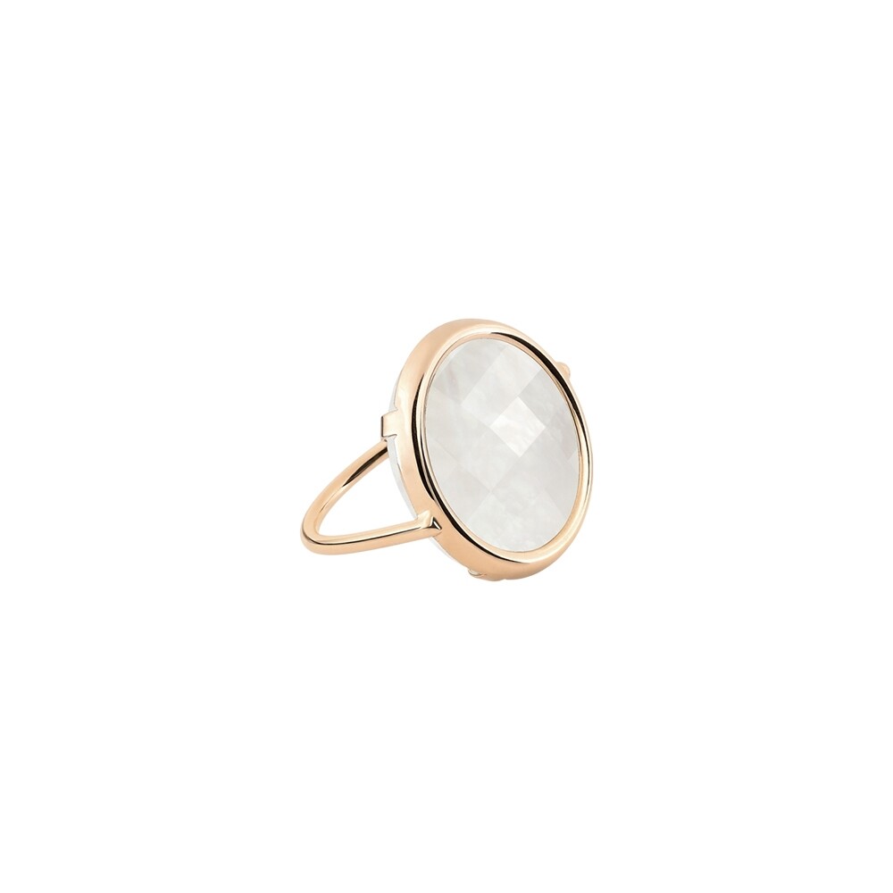 Bague Ginette NY PIXIE DISC pierre de lune blanche facettée et or rose