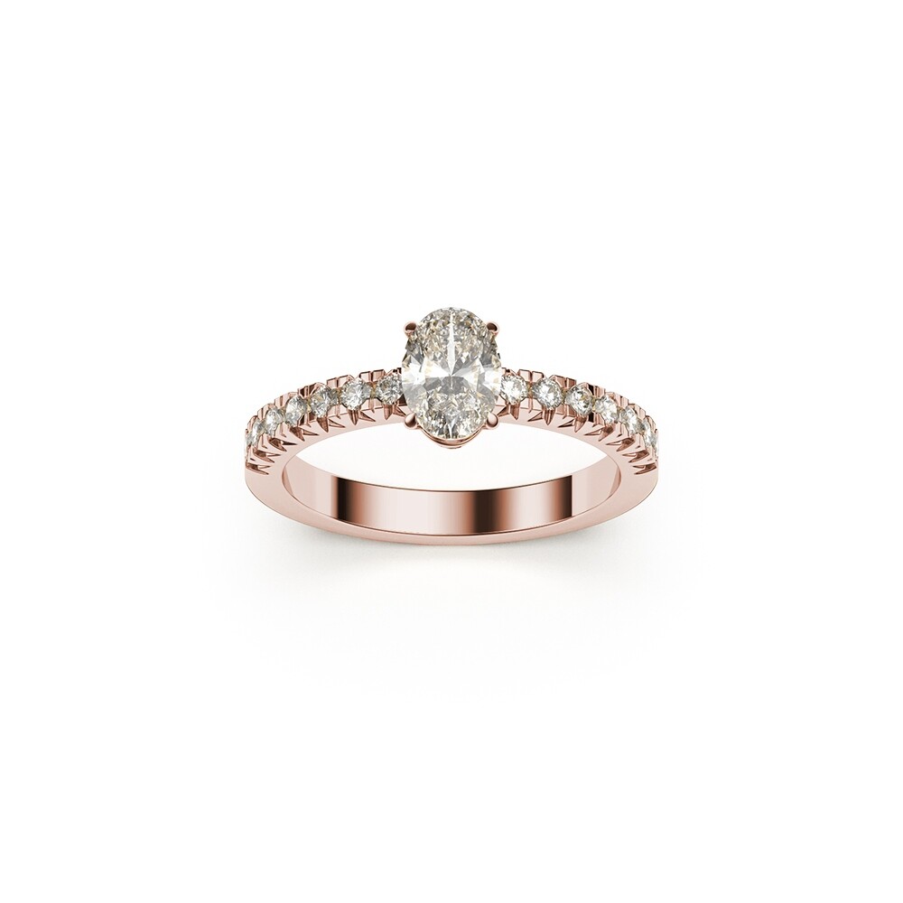 Bague solitaire Frojo en or rose diamant ovale, corps pavé diamants