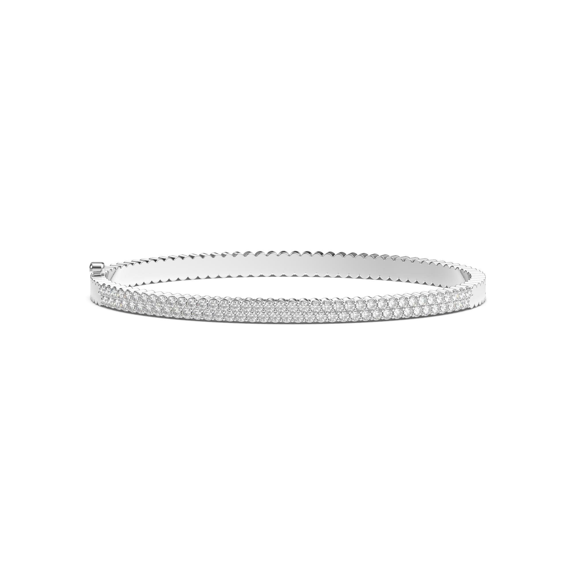 Bracelet jonc Frojo ouvrant demi pavé diamants sur 2 rangs et or blanc