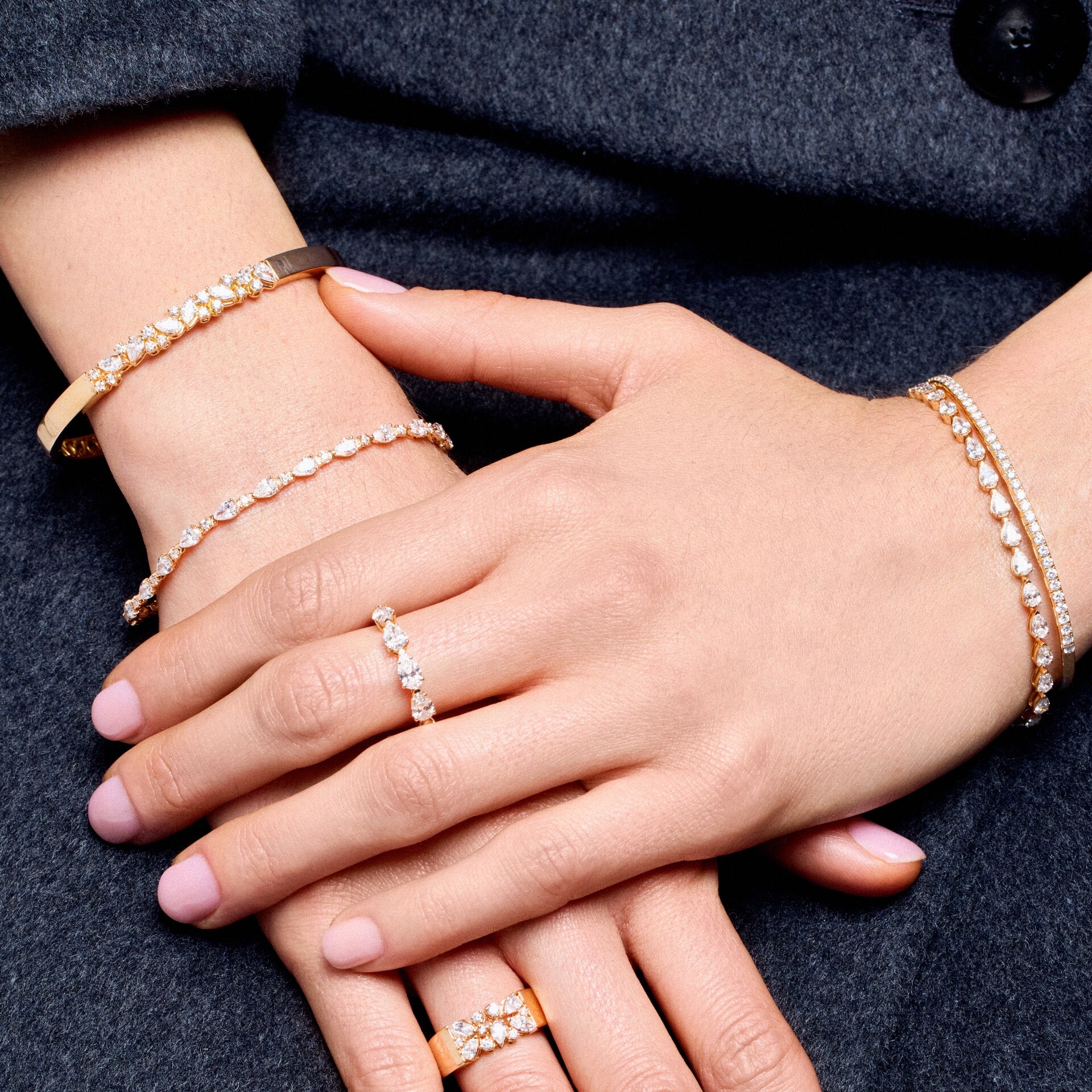 Bracelet Frojo rivière or rose diamants poires