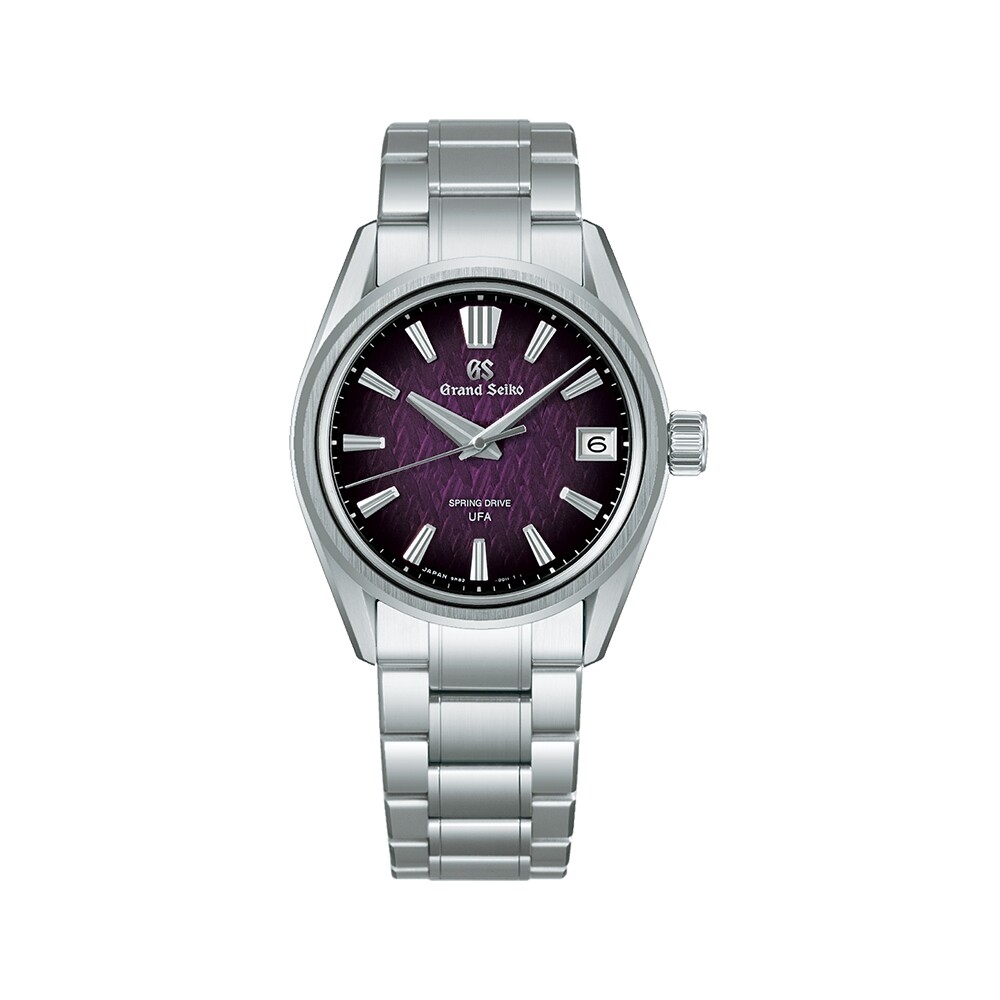 Cette nouvelle création Spring Drive U.F.A. s’inspire du « Style Evolution 9 », un langage de design unique qui élève la fusion de l’esprit Grand Seiko et de la sensibilité esthétique japonaise à un niveau supérieur. Son cadran texturé, de couleur violette, évoque l’instant saisissant où l’aube se lève sur les forêts givrées de la région de Shinshu, située au centre du Japon, où toutes les montres Spring Drive de Grand Seiko sont méticuleusement fabriquées.