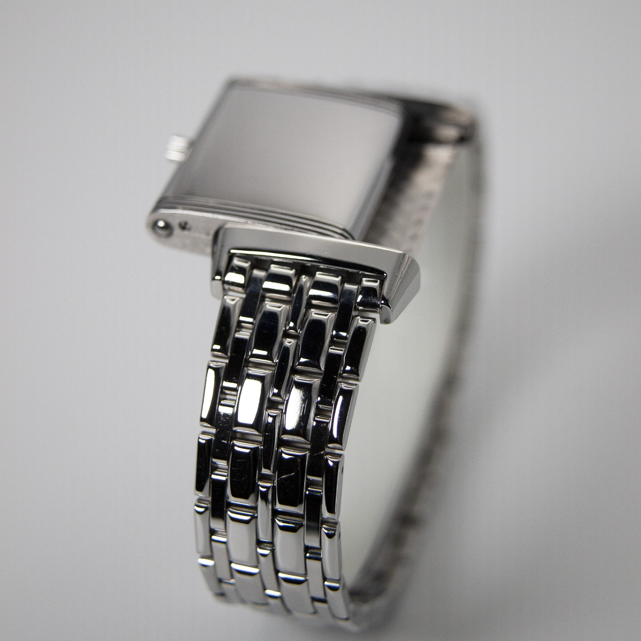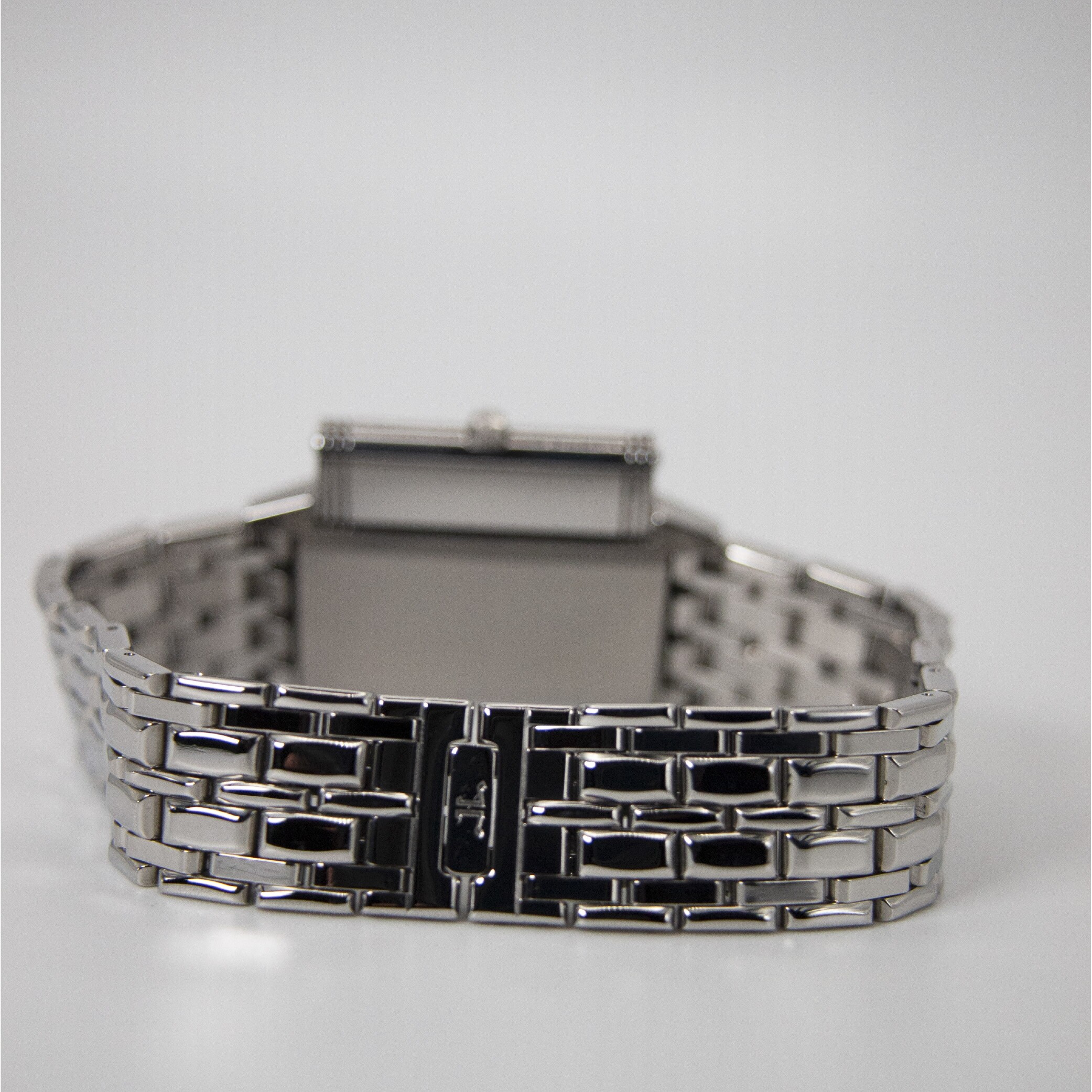 Elle présente un boîtier rectangulaire unique pouvant être retourné pour protéger le cadran, une caractéristique distinctive de la ligne Reverso depuis 1931.