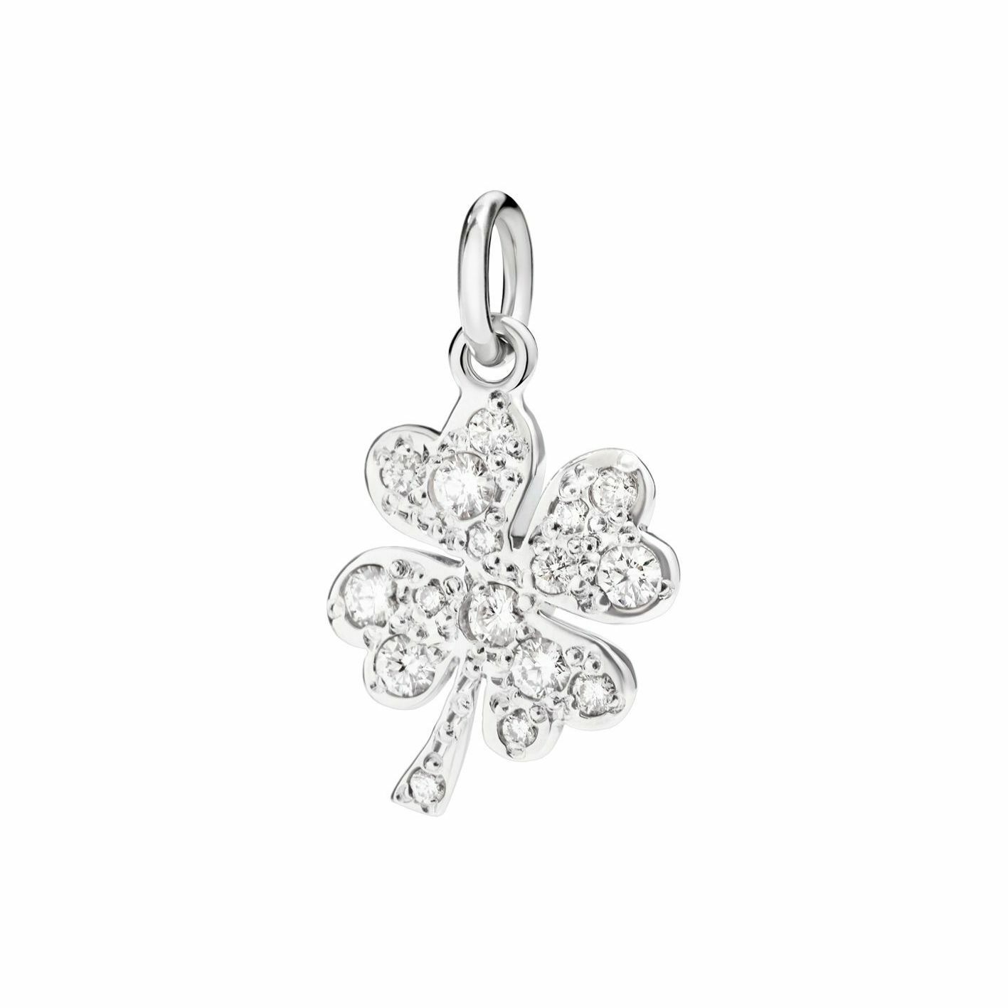 Pendentif Dodo trèfle à quatre feuilles en or blanc et diamants