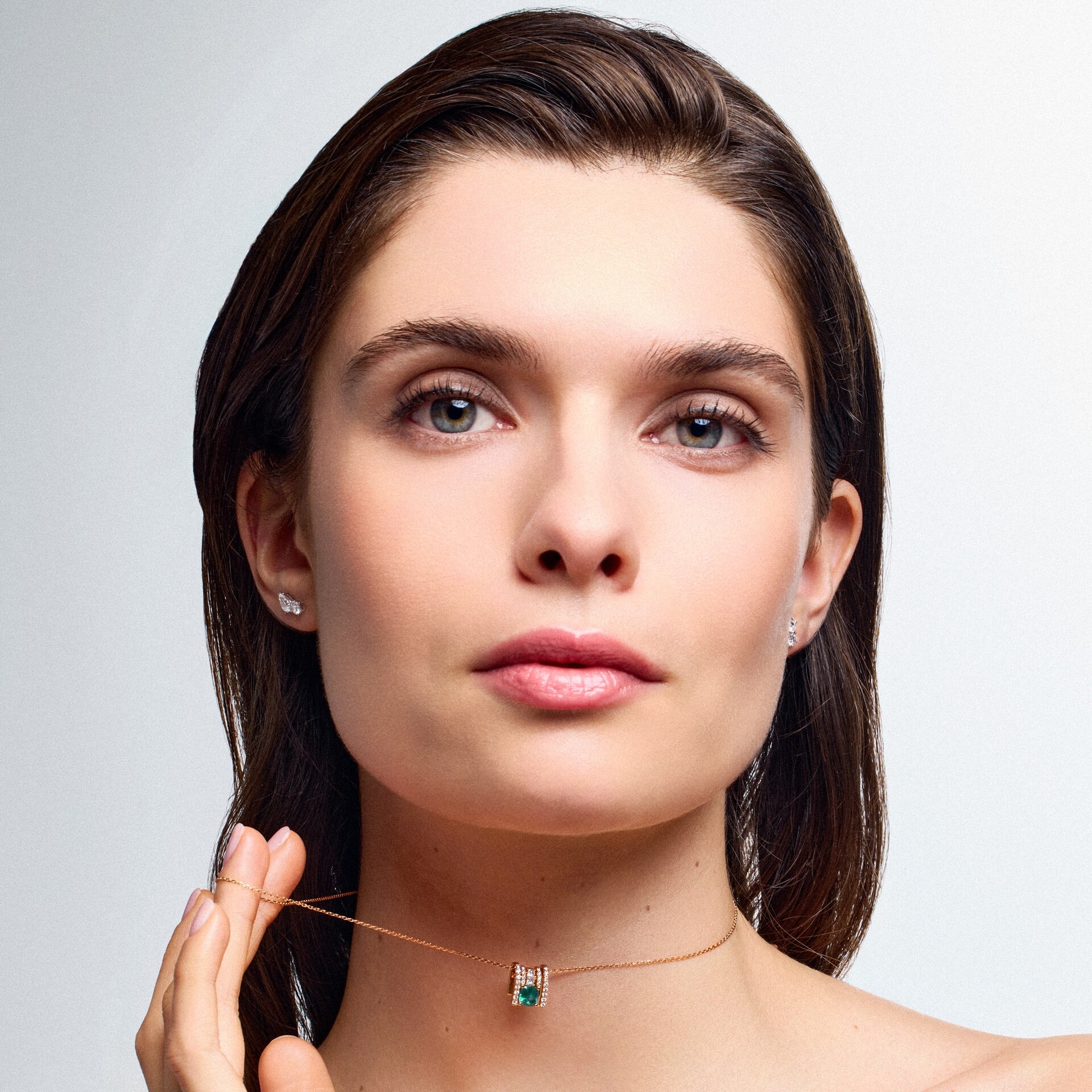 Pendentif Frojo Scala émeraude coussin, diamants, or rose