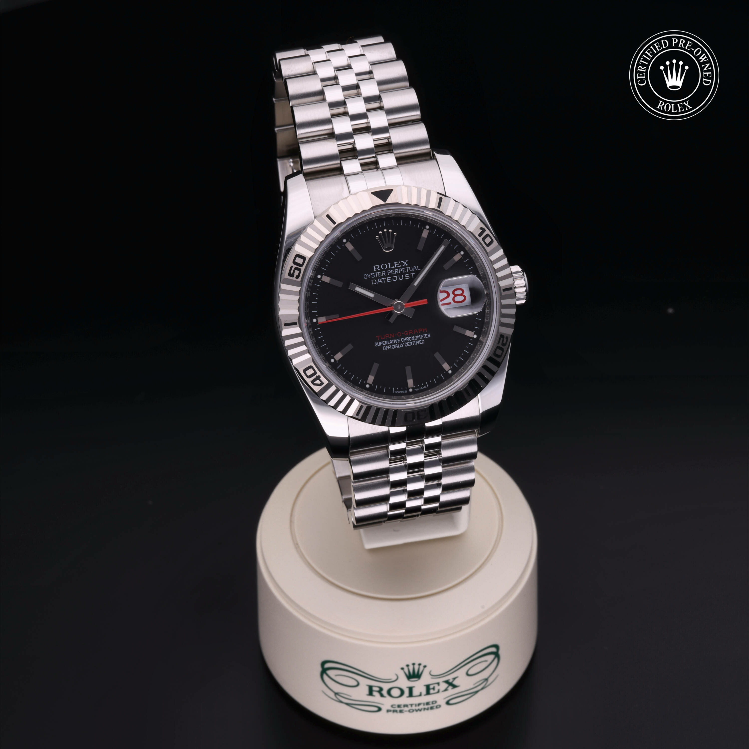 Née en 1945, elle est la première montre‑bracelet chronomètre, automatique et étanche à afficher la date dans un guichet à 3 h sur le cadran. LʼOyster Perpetual Datejust est proposée en acier Oystersteel, dans des déclinaisons combinant acier Oystersteel et or jaune, gris ou Everose, ou entièrement en or 18 ct, avec une grande variété de cadrans, de lunettes et de bracelets. La Datejust se décline aussi en versions serties de diamants.